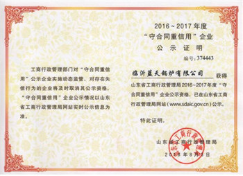 山东临沂蓝天锅炉有限公司国家质检总局“A级锅炉制造”“D1/D2压力容器设计、制造”“叁级锅炉安装”许可企业。获得“山东著名商标”“守合同重信用”等荣誉。 公司集设计开发、生产销售为一体。产品30大类,100多个品种,主要产品有蒸汽锅炉:SZL结构系列、DZL结构系列、WNS结构系列、DZG结构系列、LSC结构系列、WDR结构系列等;导热油炉:YGL结构系列、YLL结构系列、YLW结构系列、YY(Q)L结构系列、YY(Q)W结构系列、YDW结构系列、RYL结构系列等;热水锅炉:CSZL结构系列、CDZL结构系列、CWNS结构系列、CDZG结构系列等;余热蒸汽锅炉,余热有机热载体锅炉、蒸汽发生器、蒸压釜、脱硫除尘器、压力容器等一系列产品。 公司管理机构完备,下设销售公司、供应部、技术部、质检部、生产部、售后服务部、财务部、人事部和办公室。 我公司一贯奉行“以质量求生存,以技术求发展”的经营理念。公司具有良好的生产条件,切割、成型、焊接、组装、压力试验、机加工、起重和检测设备齐全。近年来,公司又配置了数控切割机、大型卷板机、自动氩弧焊焊接设备。 此外,公司还建立了严密的质量保证管理体系,并将质量控制贯穿于设计、采购、生产、检验的全过程中,保证了产品的高质量,得到了用户的认可。环保除尘器已通过中国环境保护协会认证,符合GB13271-2001《锅炉大气污染排放标准》并取得环保产品认证证书,深受用户的信赖。 近年来,随着人们对节约能源环保意识的提高,公司新开发蒸汽锅炉、燃煤燃油燃气导热油锅炉、热水锅炉、脱硫除尘器得到了越来越多的客户认可和社会的青睐。公司自创建以来,一直秉承“质量为生命,服务为根本”的经营理念,以“坦诚做人、精心做事、诚信经营、专业服务”的宗旨,奉行“质量第一”原则,以高标准、高质量、高要求制造每个产品,确保用户满意。 新时代的客户对蒸汽锅炉、导热油锅炉、热水锅炉有什么需求;伴随着时代不断发展,客户还会有什么期望,蓝锅在真心关注、蓝锅在创新设计,不断赋予产品更人性化的功能。 蓝锅产品超前设计——环保与节能。满足社会与客户日益迫切的需求。